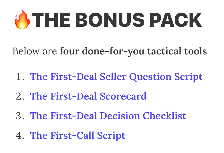 For my first deal, I’m not trying to be a hero. I want clear, boring growth levers: